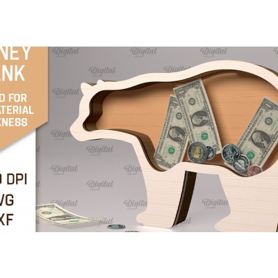 Σετ των 2 Intra απο ξύλο plywood 3mm-4mm πάχος – Ξύλινη τράπεζα χρημάτων με λέιζερ. Αρκούδα Δίασταση 20x20 cm INTRAFABR-91976556