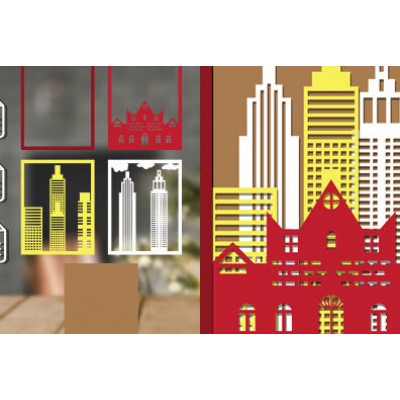 Σετ των 2 Intra απο ξύλο plywood 3mm-4mm πάχος τρισδιάστατου κιβωτίου σκιάς αστικό τοπίο Δίασταση 25x25 cm INTRAFABR-59837893