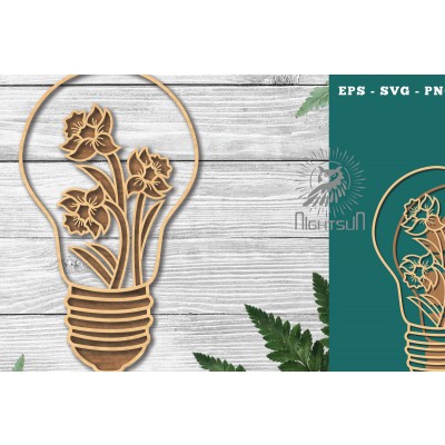 Όνομα Προϊόντος Σετ των 2 Intra απο ξύλο plywood 3mm-4mm πάχος - Λουλούδια σε λάμπα κομμένη διακόσμηση λέιζερ 3 Δίασταση 20x20 cm INTRAFABR-115873403