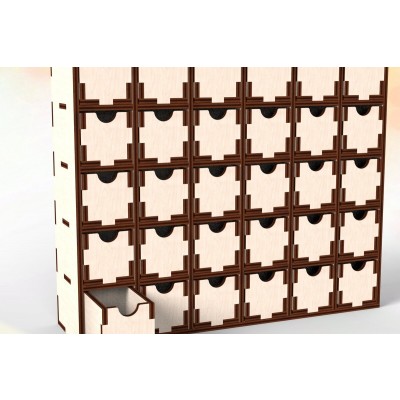 Συμπαγής οργάνωση γραφείου 30 συρταριών Cut Πρόκειται για ψηφιακό σχεδίου, ιδανικό για κοπή με ή plotter. Κατασκευασμένο απο Ξύλο από plywood [3mm ή 4mm], κομμένο με ακρίβεια στην βιοτεχνία Intrahome . Το φυσικό ξύλο προσφέρει μια κομψή, αυθεντική υφή και μπορεί εύκολα να βαφτεί ή να διακοσμηθεί σύμφωνα με το προσωπικό σας γούστο. Ελληνική παραγωγή – Κατασκευάζεται στην Ελλάδα με προσοχή στη λεπτομέρεια και υψηλές προδιαγραφές ποιότητας. ✔️ Υλικό: Plywood υψηλής ποιότητας ✔️ Διατίθεται σε πάχος 3mm ή 4mm ✔️ Ελαφρύ, ανθεκτικό και εύκολο στη χρήση ✔️ Ιδανικό για βάψιμο, χάραξη, κόλληση και χειροτεχνίες ✔️ Κατάλληλο για μπομπονιέρες, διακόσμηση, δώρα και DIY projects ✅ Εγγύηση 2 ετών – Σε περίπτωση σπασίματος, η αντικατάσταση γίνεται άμεσα, χάρη στην τοπική ελληνική παραγωγή μας. Ιδανικό για δημιουργικούς ανθρώπους που αγαπούν το DIY. Μπορεί να γίνει ξεχωριστό δώρο με προσωπικό χαρακτήρα. Φέρνει “χειροποίητη” αισθητική στη διακόσμηση. -files- Ελληνική χειροποίητη παραγωγή →