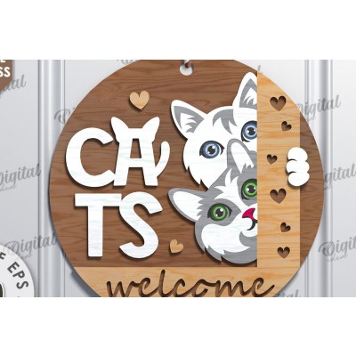 Όνομα Προϊόντος Σετ των 2 Intra απο ξύλο plywood 3mm-4mm πάχος Σχέδιο κοπής με λέιζερ στρογγυλή πινακίδα γάτα Δίασταση 30x20 cm INTRAFABR-111283513