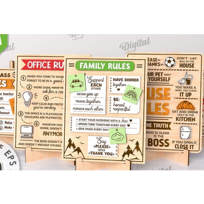 Αστεία Κανόνες Πλακέτες Πακέτο κοπής με λέιζερ Πρόκειται για ψηφιακό σχεδίου, ιδανικό για κοπή με ή plotter. Κατασκευασμένο απο Ξύλο από plywood [3mm ή 4mm], κομμένο με ακρίβεια στην βιοτεχνία Intrahome . Το φυσικό ξύλο προσφέρει μια κομψή, αυθεντική υφή και μπορεί εύκολα να βαφτεί ή να διακοσμηθεί σύμφωνα με το προσωπικό σας γούστο. Ελληνική παραγωγή – Κατασκευάζεται στην Ελλάδα με προσοχή στη λεπτομέρεια και υψηλές προδιαγραφές ποιότητας. ✔️ Υλικό: Plywood υψηλής ποιότητας ✔️ Διατίθεται σε πάχος 3mm ή 4mm ✔️ Ελαφρύ, ανθεκτικό και εύκολο στη χρήση ✔️ Ιδανικό για βάψιμο, χάραξη, κόλληση και χειροτεχνίες ✔️ Κατάλληλο για μπομπονιέρες, διακόσμηση, δώρα και DIY projects ✅ Εγγύηση 2 ετών – Σε περίπτωση σπασίματος, η αντικατάσταση γίνεται άμεσα, χάρη στην τοπική ελληνική παραγωγή μας. Ιδανικό για δημιουργικούς ανθρώπους που αγαπούν το DIY. Μπορεί να γίνει ξεχωριστό δώρο με προσωπικό χαρακτήρα. Φέρνει “χειροποίητη” αισθητική στη διακόσμηση. -files- Ελληνική χειροποίητη παραγωγή