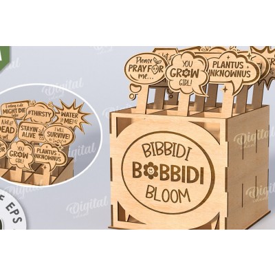 Σετ των 2 Intra απο ξύλο plywood 3mm-4mm πάχος - Αστεία φυτά μαρκαδόροι με κουτί Δίασταση 30x20 cm INTRAFABR-116816554