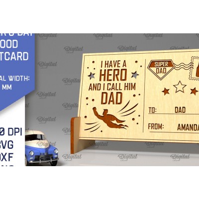 Κόψιμο με λέιζερ Ξύλινη Καρτ ποστάλ για την Ημέρα του Πατέρα Πρόκειται για ψηφιακό σχεδίου, ιδανικό για κοπή με ή plotter. Κατασκευασμένο απο Ξύλο από plywood [3mm ή 4mm], κομμένο με ακρίβεια στην βιοτεχνία Intrahome . Το φυσικό ξύλο προσφέρει μια κομψή, αυθεντική υφή και μπορεί εύκολα να βαφτεί ή να διακοσμηθεί σύμφωνα με το προσωπικό σας γούστο. Ελληνική παραγωγή – Κατασκευάζεται στην Ελλάδα με προσοχή στη λεπτομέρεια και υψηλές προδιαγραφές ποιότητας. ✔️ Υλικό: Plywood υψηλής ποιότητας ✔️ Διατίθεται σε πάχος 3mm ή 4mm ✔️ Ελαφρύ, ανθεκτικό και εύκολο στη χρήση ✔️ Ιδανικό για βάψιμο, χάραξη, κόλληση και χειροτεχνίες ✔️ Κατάλληλο για μπομπονιέρες, διακόσμηση, δώρα και DIY projects ✅ Εγγύηση 2 ετών – Σε περίπτωση σπασίματος, η αντικατάσταση γίνεται άμεσα, χάρη στην τοπική ελληνική παραγωγή μας. Ιδανικό για δημιουργικούς ανθρώπους που αγαπούν το DIY. Μπορεί να γίνει ξεχωριστό δώρο με προσωπικό χαρακτήρα. Φέρνει “χειροποίητη” αισθητική στη διακόσμηση. -files- Ελληνική χειροπ