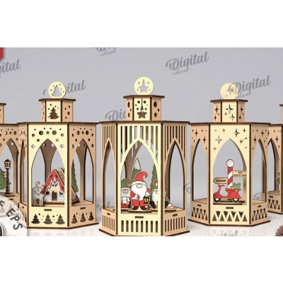 Σετ των 2 Intra απο ξύλο plywood 3mm-4mm πάχος κοπής 3D Χριστουγεννιάτικων Φαναριών με λέιζερ Δίασταση 15x15 cm INTRAFABR-108836503