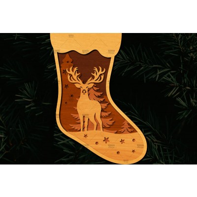 Σετ των 2 Intra απο ξύλο plywood 3mm-4mm πάχος Χριστουγεννιάτικη κάλτσα 3D σχέδιο κοπής με λέιζερ Δίασταση 15x15 cm INTRAFABR-109164127