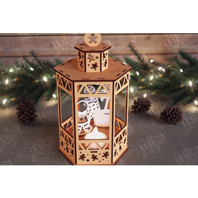 Σετ των 2 Intra απο ξύλο plywood 3mm-4mm πάχος 3D Χριστουγεννιάτικο Φανάρι | Κηροπήγιο Δίασταση 15x15 cm INTRAFABR-110588488