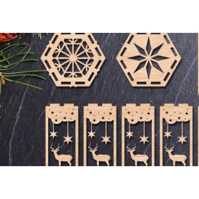 Σετ των 2 Intra απο ξύλο plywood 3mm-4mm πάχος 3D Χριστουγεννιάτικο ξύλινο φανάρι με λέιζερ Δίασταση 15x15 cm INTRAFABR-83301696