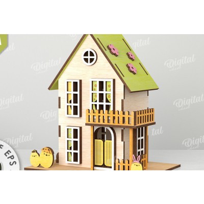 Σετ των 2 Intra απο ξύλο plywood 3mm-4mm πάχος – Ξύλινο Πασχαλινό Σπίτι με λέιζερ. 3D Πάσχα Δίασταση 20x20 cm INTRAFABR-116176350