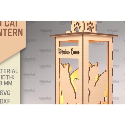 Σετ των 2 Intra απο ξύλο plywood 3mm-4mm πάχος 3D Φανάρι γάτας . Λάμπα κοπής με λέιζερ Δίασταση 30x20 cm INTRAFABR-92624656