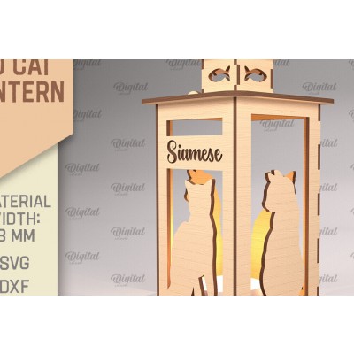 Σετ των 2 Intra απο ξύλο plywood 3mm-4mm πάχος 3D Φανάρι γάτας . Λάμπα κοπής με λέιζερ Δίασταση 30x20 cm INTRAFABR-92625564