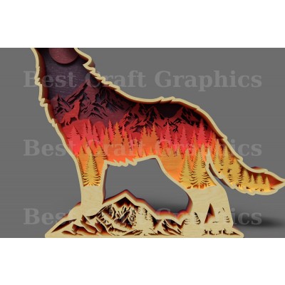 Σετ των 2 Intra απο ξύλο plywood 3mm-4mm πάχος – Αρχείο κοπής λέιζερ 3D Forest Landscape Wolf Δίασταση 20x20 cm INTRAFABR-121179748