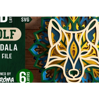 Σετ των 2 Intra απο ξύλο plywood 3mm-4mm πάχος – Αρχείο αποκοπής 3D Layered Wolf Mandala Δίασταση 20x20 cm INTRAFABR-21711549