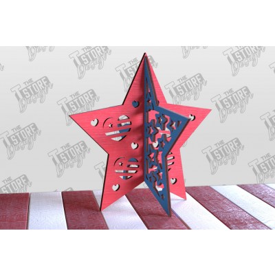 Σετ των 2 Intra απο ξύλο plywood 3mm-4mm πάχος 3D Patriotic Stars | Διακοσμητικά αστέρια Δίασταση 15x15 cm INTRAFABR-97756746