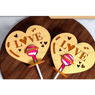 Σετ των 2 Intra απο ξύλο plywood 3mm-4mm πάχος 3D Valentine. Lollipop Holder Cut Δίασταση 15x15 cm INTRAFABR-83941378