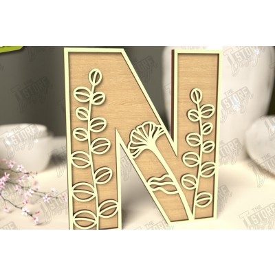 Όνομα Προϊόντος Σετ των 2 Intra απο ξύλο plywood 3mm-4mm πάχος - Γράμματα λουλουδιών | Alphabet | Floral Design Δίασταση 30x20 cm INTRAFABR-118677056