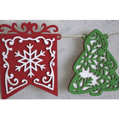 Σετ των 2 Intra απο ξύλο plywood 3mm-4mm πάχος Χριστουγεννιάτικο Banner | Γιρλάντα διακοπών | CNC Δίασταση 15x15 cm INTRAFABR-109751398