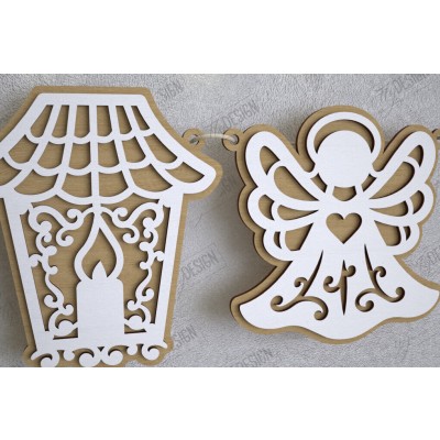 Σετ των 2 Intra απο ξύλο plywood 3mm-4mm πάχος Χριστουγεννιάτικο Banner | Γιρλάντα διακοπών | CNC Δίασταση 15x15 cm INTRAFABR-109751411