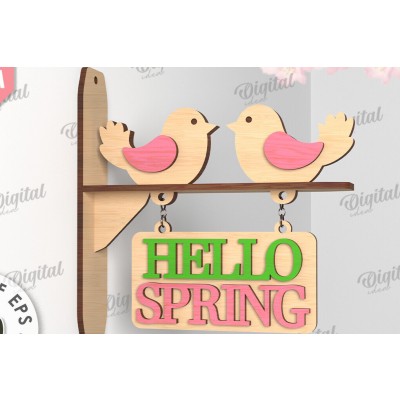 Σετ των 2 Intra απο ξύλο plywood 3mm-4mm πάχος – Καλώς ήρθες Άνοιξη. Bird Decor Δίασταση 20x20 cm INTRAFABR-116177362