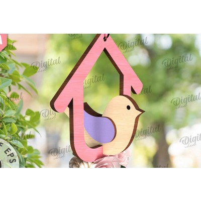 Σετ των 2 Intra απο ξύλο plywood 3mm-4mm πάχος – Καλώς ήρθες Άνοιξη. Bird Decor Δίασταση 20x20 cm INTRAFABR-116177738