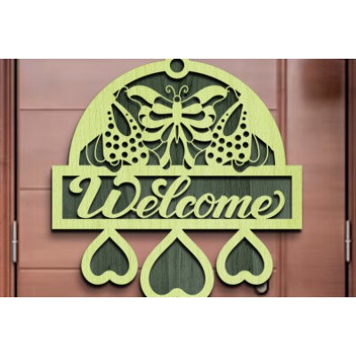 Σετ των 2 Intra απο ξύλο plywood 3mm-4mm πάχος Butterfly Welcome Sign . Δίασταση 30x20 cm INTRAFABR-76213700