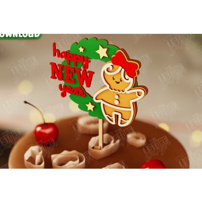Όνομα Προϊόντος Σετ των 2 Intra απο ξύλο plywood 3mm-4mm πάχος Χριστουγεννιάτικο Cake Topper | Πρωτοχρονιάτικο σημάδι Δίασταση 15x15 cm INTRAFABR-108030954