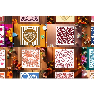 Σετ των 2 Intra απο ξύλο plywood 3mm-4mm πάχος – Πακέτο Card Valentine's Cut Paper Cut Δίασταση 20x20 cm INTRAFABR-113995525