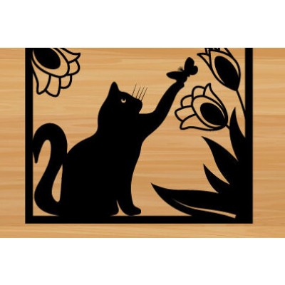 Όνομα Προϊόντος Σετ των 2 Intra απο ξύλο plywood 3mm-4mm πάχος κοπής με λέιζερ μεταλλικού τοίχου Cat Δίασταση 40x40 cm INTRAFABR-72109535