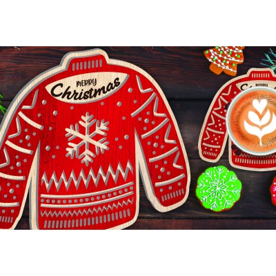 Όνομα Προϊόντος Σετ των 2 Intra απο ξύλο plywood 3mm-4mm πάχος Christmas Cup Coaster Cut Δίασταση 15x15 cm INTRAFABR-107978186