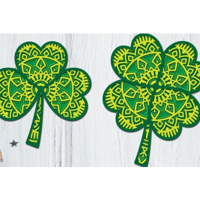 Κριτικάρετε το(τα): Σετ των 2 Intra απο ξύλο plywood 3mm-4mm πάχος - Clover Mandala 3D Layered Papercut Δίασταση 30x30 cm INTRAFABR-89420696