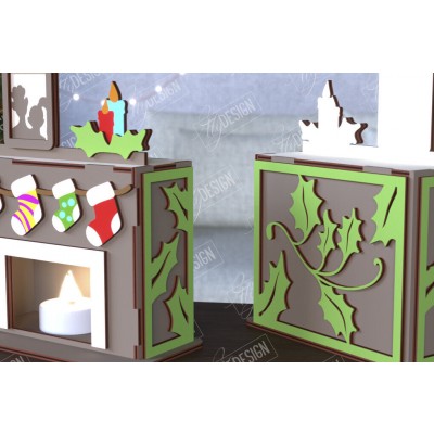 Σετ των 2 Intra απο ξύλο plywood 3mm-4mm πάχος Χριστουγεννιάτικη λαμπάδα | Τζάκι |CNC Δίασταση 15x15 cm INTRAFABR-108121941