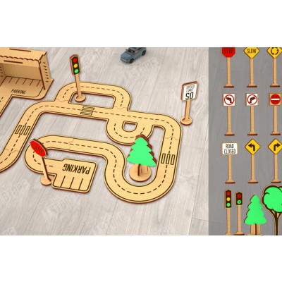 Όνομα Προϊόντος Σετ των 2 Intra απο ξύλο plywood 3mm-4mm πάχος – Ξύλινη πίστα αυτοκινήτου | Αγωνιστική πίστα |CNC Δίασταση 20x20 cm INTRAFABR-115494613