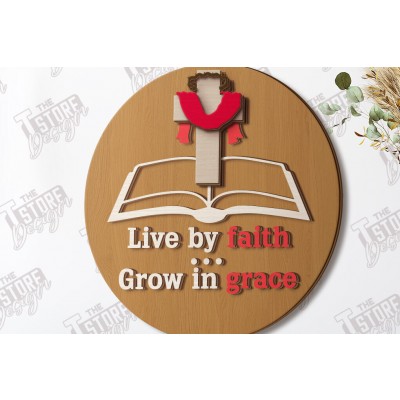 Σετ των 2 Intra απο ξύλο plywood 3mm-4mm πάχος Χριστιανική στρογγυλή πινακίδα τοίχου |CNC Δίασταση 30x20 cm INTRAFABR-120653529
