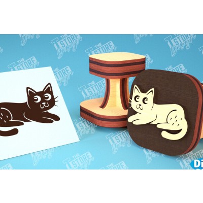 Σετ των 2 Intra απο ξύλο plywood 3mm-4mm πάχος Σφραγίδα γάτας | Παιδικό Σχέδιο | CNC Δίασταση 30x20 cm INTRAFABR-99549584
