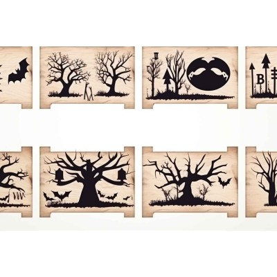 Σετ των 2 Intra απο ξύλο plywood 3mm-4mm πάχος - Πακέτο Ξύλινων πινακίδων Cricut Halloween Δίασταση 15x15 cm INTRAFABR-80701115