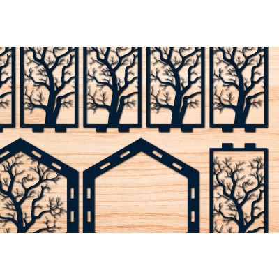Σετ των 2 Intra απο ξύλο plywood 3mm-4mm πάχος – Χαρτί/λέιζερ Cut Tree of Life Lantern Δίασταση 20x20 cm INTRAFABR-56509004