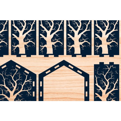 Σετ των 2 Intra απο ξύλο plywood 3mm-4mm πάχος – Χαρτί/λέιζερ Cut Tree of Life Lantern Δίασταση 20x20 cm INTRAFABR-56509483