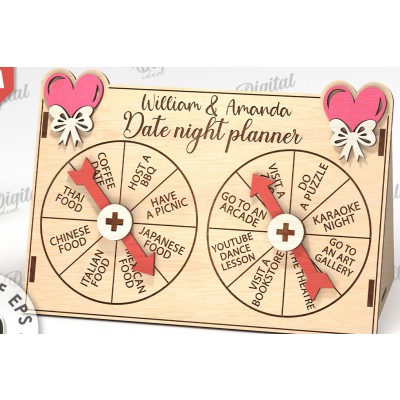 Date Night Spinner Planner Laser Cut Πρόκειται για ψηφιακό σχεδίου, ιδανικό για κοπή με ή plotter. Κατασκευασμένο απο Ξύλο από plywood [3mm ή 4mm], κομμένο με ακρίβεια στην βιοτεχνία Intrahome . Το φυσικό ξύλο προσφέρει μια κομψή, αυθεντική υφή και μπορεί εύκολα να βαφτεί ή να διακοσμηθεί σύμφωνα με το προσωπικό σας γούστο. Ελληνική παραγωγή – Κατασκευάζεται στην Ελλάδα με προσοχή στη λεπτομέρεια και υψηλές προδιαγραφές ποιότητας. ✔️ Υλικό: Plywood υψηλής ποιότητας ✔️ Διατίθεται σε πάχος 3mm ή 4mm ✔️ Ελαφρύ, ανθεκτικό και εύκολο στη χρήση ✔️ Ιδανικό για βάψιμο, χάραξη, κόλληση και χειροτεχνίες ✔️ Κατάλληλο για μπομπονιέρες, διακόσμηση, δώρα και DIY projects ✅ Εγγύηση 2 ετών – Σε περίπτωση σπασίματος, η αντικατάσταση γίνεται άμεσα, χάρη στην τοπική ελληνική παραγωγή μας. Ιδανικό για δημιουργικούς ανθρώπους που αγαπούν το DIY. Μπορεί να γίνει ξεχωριστό δώρο με προσωπικό χαρακτήρα. Φέρνει “χειροποίητη” αισθητική στη διακόσμηση. -files- Ελληνική χειροποίητη παραγωγή → στηρίζε