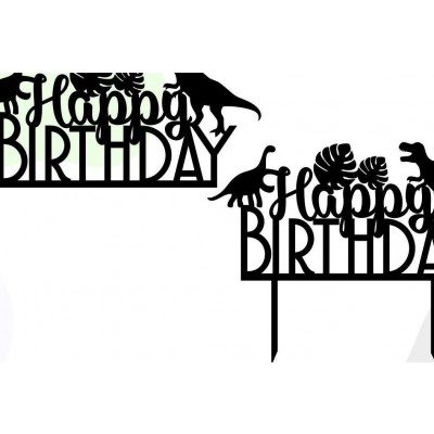 Όνομα Προϊόντος Σετ των 2 Intra απο ξύλο plywood 3mm-4mm πάχος - Dino Happy Birthday Cake Topper Δίασταση 20x20 cm INTRAFABR-32100154