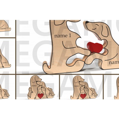 Όνομα Προϊόντος Σετ των 2 Intra απο ξύλο plywood 3mm-4mm πάχος – Εξατομικευμένο Dog Family Puzzle Δίασταση 20x20 cm INTRAFABR-121965187