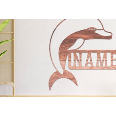 Σετ των 2 Intra απο ξύλο plywood 3mm-4mm πάχος - Dolphin Name Sin Laser Cut Δίασταση 30x20 cm INTRAFABR-74828404
