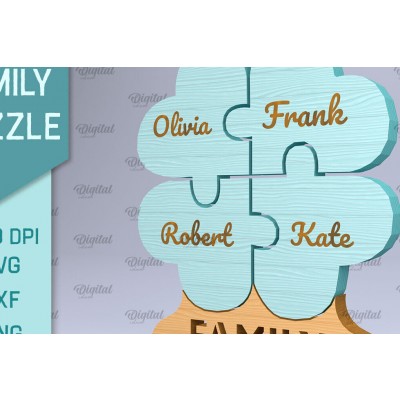 Σετ των 2 Intra απο ξύλο plywood 3mm-4mm πάχος – Εξατομικευμένο Family Puzzle Cut Laser Δίασταση 20x20 cm INTRAFABR-90813334
