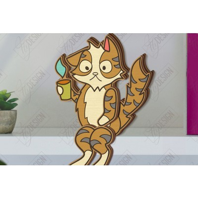 Σετ των 2 Intra απο ξύλο plywood 3mm-4mm πάχος - Funny Cats Shelf Sitters Cut Laser | CNC Δίασταση 20x20 cm INTRAFABR-121431719