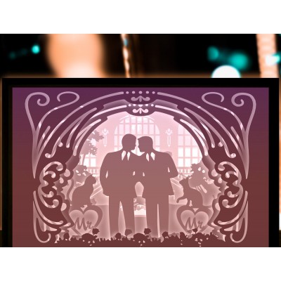 Ζευγάρι γάμου Gay Paper Cut Light Box Πρόκειται για ψηφιακό σχεδίου, ιδανικό για κοπή με ή plotter. Κατασκευασμένο απο Ξύλο από plywood [3mm ή 4mm], κομμένο με ακρίβεια στην βιοτεχνία Intrahome . Το φυσικό ξύλο προσφέρει μια κομψή, αυθεντική υφή και μπορεί εύκολα να βαφτεί ή να διακοσμηθεί σύμφωνα με το προσωπικό σας γούστο. Ελληνική παραγωγή – Κατασκευάζεται στην Ελλάδα με προσοχή στη λεπτομέρεια και υψηλές προδιαγραφές ποιότητας. ✔️ Υλικό: Plywood υψηλής ποιότητας ✔️ Διατίθεται σε πάχος 3mm ή 4mm ✔️ Ελαφρύ, ανθεκτικό και εύκολο στη χρήση ✔️ Ιδανικό για βάψιμο, χάραξη, κόλληση και χειροτεχνίες ✔️ Κατάλληλο για μπομπονιέρες, διακόσμηση, δώρα και DIY projects ✅ Εγγύηση 2 ετών – Σε περίπτωση σπασίματος, η αντικατάσταση γίνεται άμεσα, χάρη στην τοπική ελληνική παραγωγή μας. Ιδανικό για δημιουργικούς ανθρώπους που αγαπούν το DIY. Μπορεί να γίνει ξεχωριστό δώρο με προσωπικό χαρακτήρα. Φέρνει “χειροποίητη” αισθητική στη διακόσμηση. -files- Ελληνική χειροποίητη παραγωγή → στηρίζ