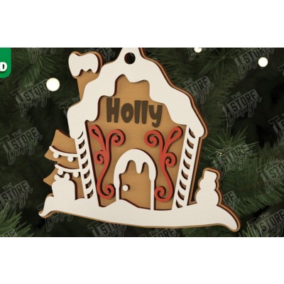 Σετ των 2 Intra απο ξύλο plywood 3mm-4mm πάχος – Εξατομικευμένο στολίδι Gingerbread House Δίασταση 20x20 cm INTRAFABR-106125302