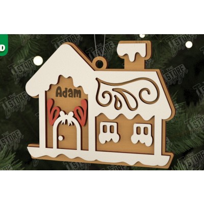 Σετ των 2 Intra απο ξύλο plywood 3mm-4mm πάχος – Εξατομικευμένο στολίδι Gingerbread House Δίασταση 20x20 cm INTRAFABR-106125424