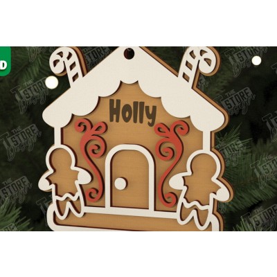 Σετ των 2 Intra απο ξύλο plywood 3mm-4mm πάχος – Εξατομικευμένο στολίδι Gingerbread House Δίασταση 20x20 cm INTRAFABR-106125462