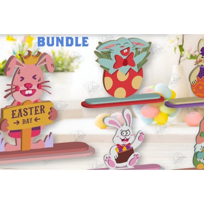 Σετ των 2 Intra απο ξύλο plywood 3mm-4mm πάχος - Πακέτο με κομμένο λέιζερ Gnome Bunny Πασχαλινό Δίασταση 15x15 cm INTRAFABR-118692537