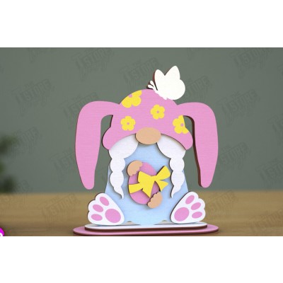 Σετ των 2 Intra απο ξύλο plywood 3mm-4mm πάχος - Gnome Bunny Πάσχα | Πασχαλινό λαγουδάκι | CNC Δίασταση 15x15 cm INTRAFABR-118346250