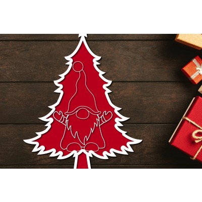 Όνομα Προϊόντος Σετ των 2 Intra απο ξύλο plywood 3mm-4mm πάχος - Χριστουγεννιάτικο δέντρο Gnome Paper Cut 3d Δίασταση 1200x1200 cm INTRAFABR-106708766